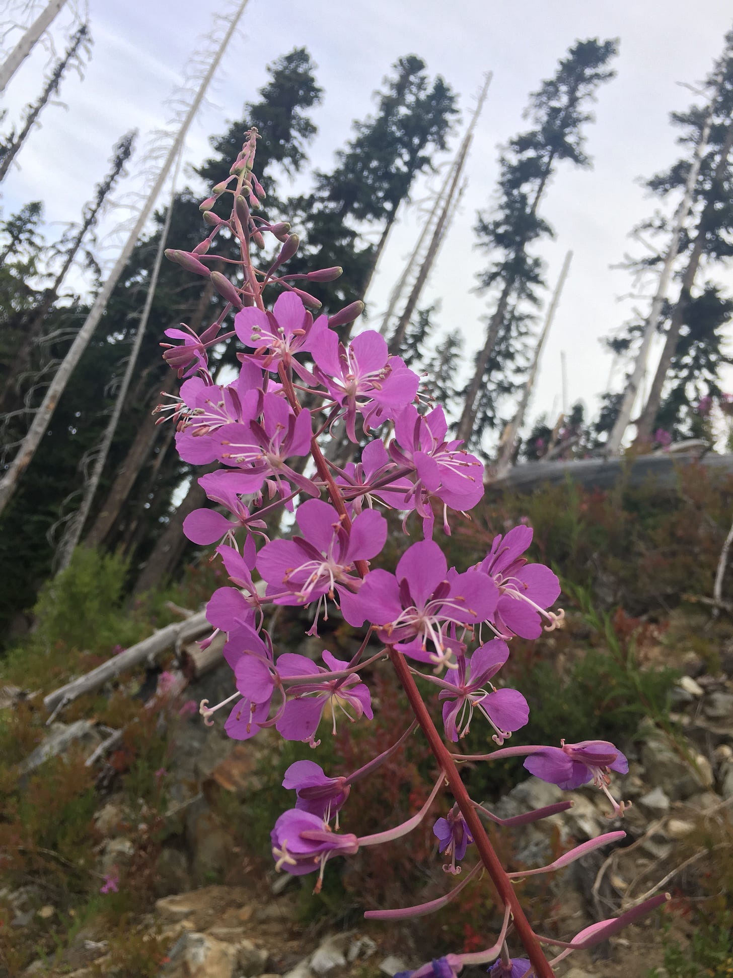 Fireweed is so called because in the mountainous places of this country it’s often the first thing to grow after a blaze devours a section of forest. It’s a beautiful plant made all the more so where it rises in contrast to the gray rocks and the skeletal remains of the trees that stayed standing even as they burned.