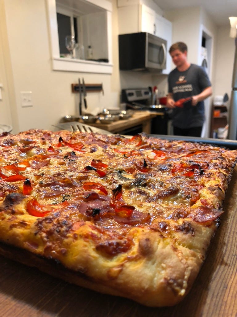 Like any good classroom teacher, he also recognizes that his vision may not match that of his pupils, and celebrates that rather than trying to dominate the space. “Pizza Party Friday” was a staple at Trey’s for the last few years he lived in Seattle; he’d make the doughs and prep a few dozen bowls of toppings and then we would create the pies together, whoever was lucky enough to be invited over that particular week. But there was rarely a comprehensive plan for all 5 or 10 pizzas we were making. Rather, he’d trust his sous chefs to follow his cardinal rule (no more than 3 toppings to a pie unless absolutely necessary) and make the choices from there.